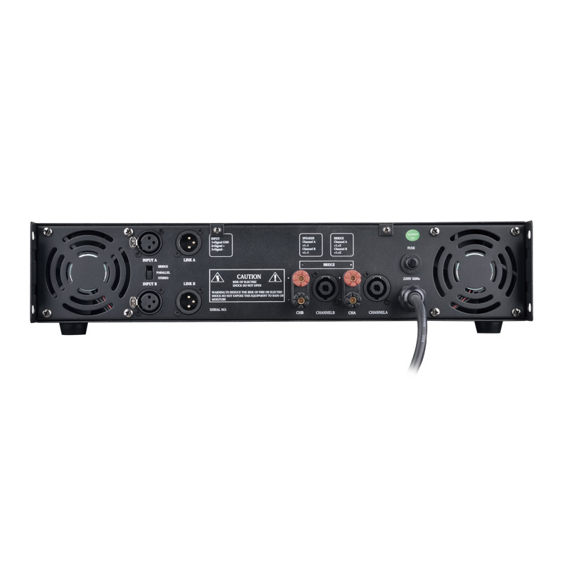 Amply công suất 02 kênh độc lập: 300W*2 (8Ω), 450W*2 (4Ω), 600W*2 (2Ω) hoặc nối cầu 900W (cầu 8Ω), 1200W (cầu 4Ω)