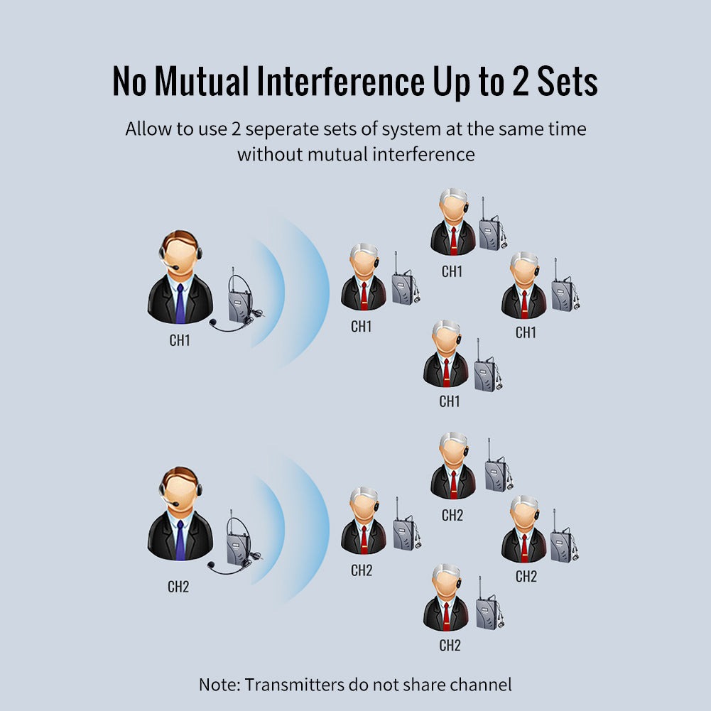 Sử dụng một máy phát đối ứng với một máy thu hoặc một máy phát làm việc với nhiều máy thu, số lượng bộ thu có thể dựa theo nhu cầu của người dùng không hạn chết số lượng