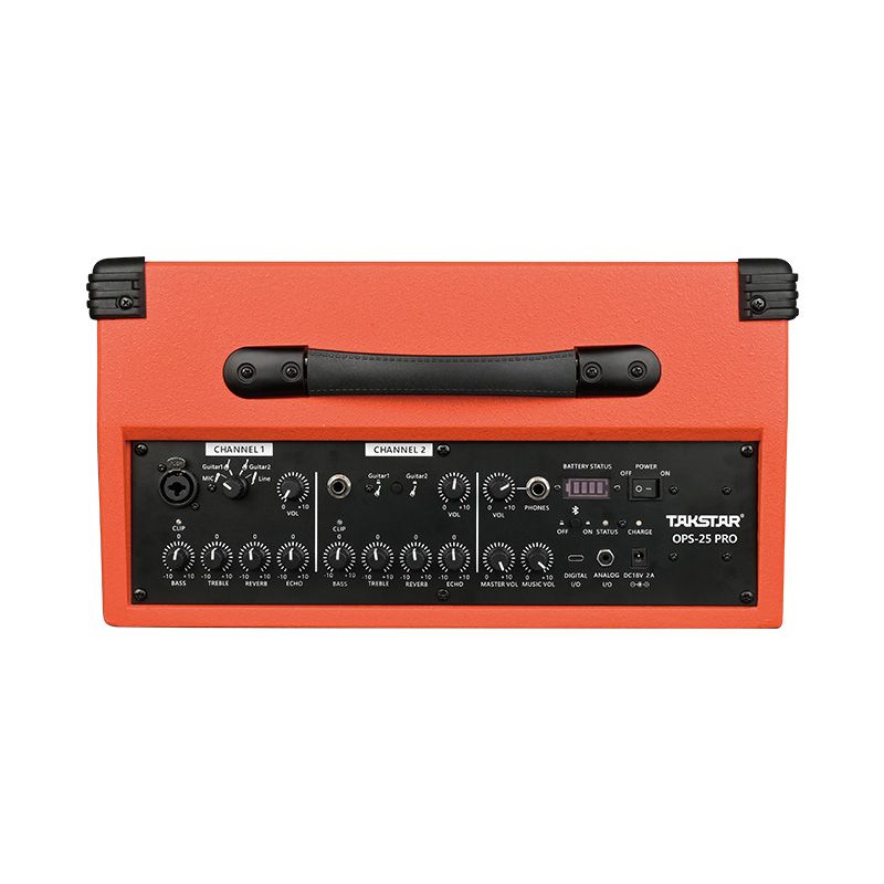 OPS-25 Pro Loa đàn hát di động xách tay Takstar tích hợp loa, amply công suất và Pin Lithium-ion 2500mAh, cho phép loa chạy liên tục 6h với chỉ 2h sạc. Tiện dụng cho các buổi Pinnic, dã ngoại, event ngoài trời