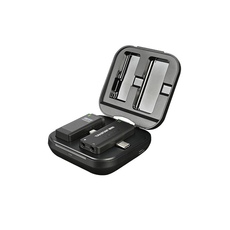 Bao gồm hộp sạc để lưu trữ và sạc máy phát và máy thu.
