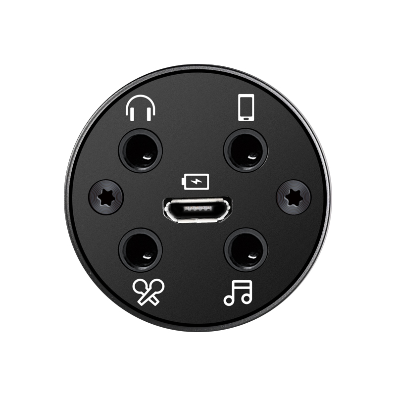 Đầu nối nhạc đệm, liên kết với nguồn âm thanh bên ngoài để phát nhạc đệm hoặc hiệu ứng chủ trì trong quá trình phát sóng web;